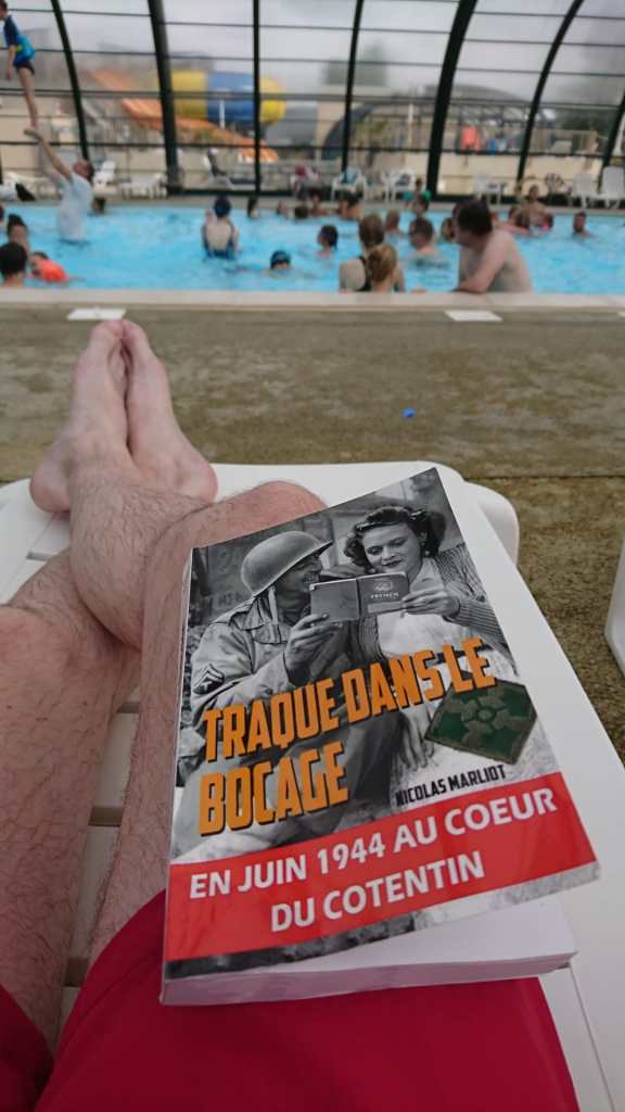 C’est au tour de « Vince » de nous partager cette photo de ses vacances, avec le polar « Traque dans le bocage » en bonne position ! Merci Vince et bonne lecture en compagnie du Captain Joss W. Bernstein.