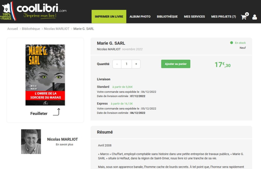 L’imprimeur toulousain « CoolLibri » (société Messages SAS) qui procède à l’impression papier des romans de Camerlynck Polars a mis en place une « bibliothèque commerciale » sur laquelle vous pouvez également commander directement le dernier polar « Marie G. SARL » en version papier.