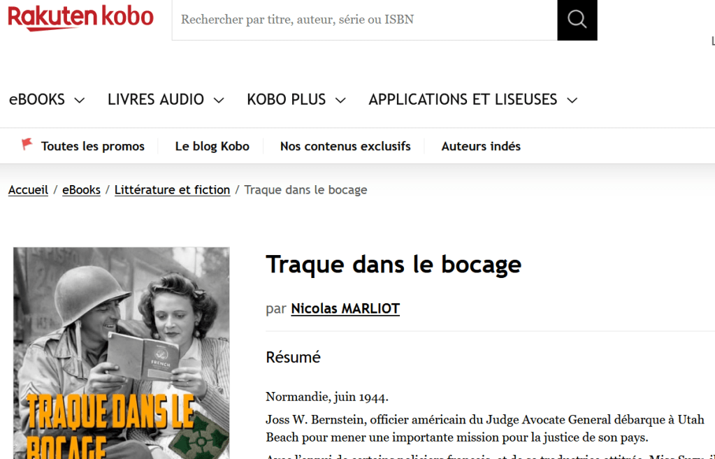 A partir de maintenant, « Traque dans le bocage » est disponible sur la plateforme Kobo. Il sera bientôt suivi par les autres romans.