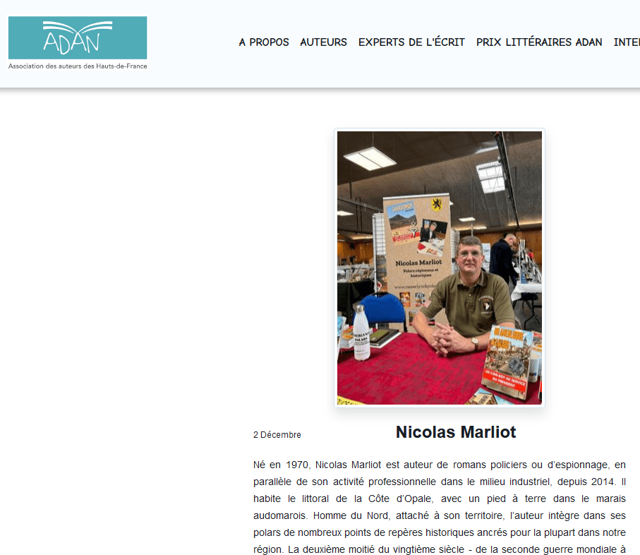 Après avoir discuté avec Antoine Duclercq, le président actuel de l’ADAN, j’ai décidé de sauter le pas et de m’inscrire à cette association des auteurs des Hauts-de-France (même si en mon for intérieur je préfère le terme « Nord ») où j’ai retrouvé de nombreuses connaissances de notre région.