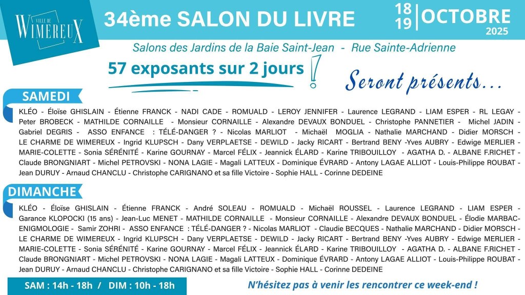 Liste des 57 auteurs présents au 34e salon du livre à Wimereux