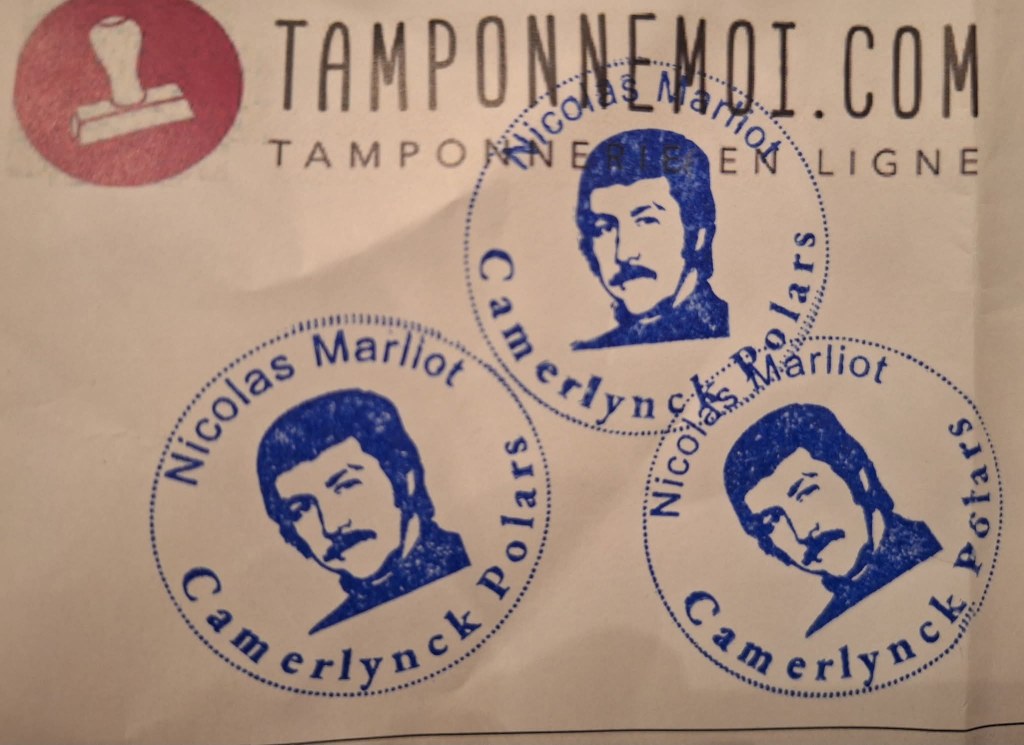 Comme un certain nombre de confrères auteurs, j’ai décidé, pour les dédicaces 2026, de rajouter un petit coup de tampon au texte (toujours sur mesure) et à la signature.