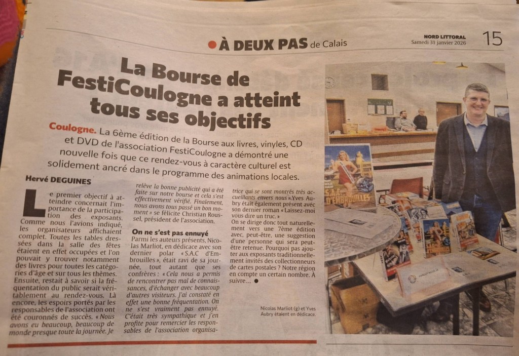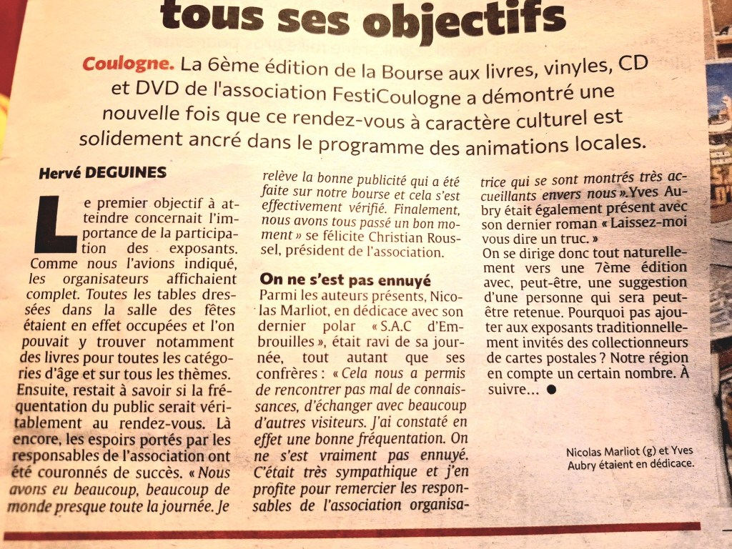 Une journée fort agréable, en compagnie de l’ami auteur Yves Aubry, le troisième invité (Hervé Deguines) étant malheuresement malade. Voici un retour en quelques photos et articles de presse.